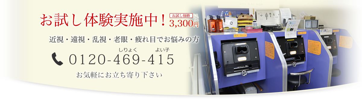 遠方・多忙の方でもトレーニングしていただけるコースもございます。視力検査は無料ですので是非ご来店下さい。