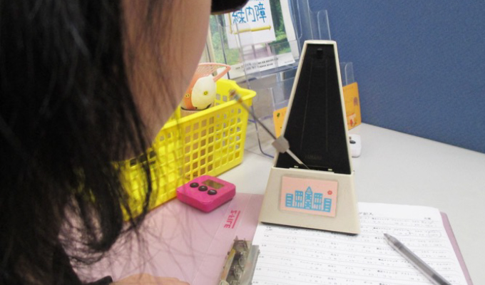 | メトロノーム訓練 | メトロノームの先端についたマークを右、左と見る眼球移動筋のトレーニング。 |
